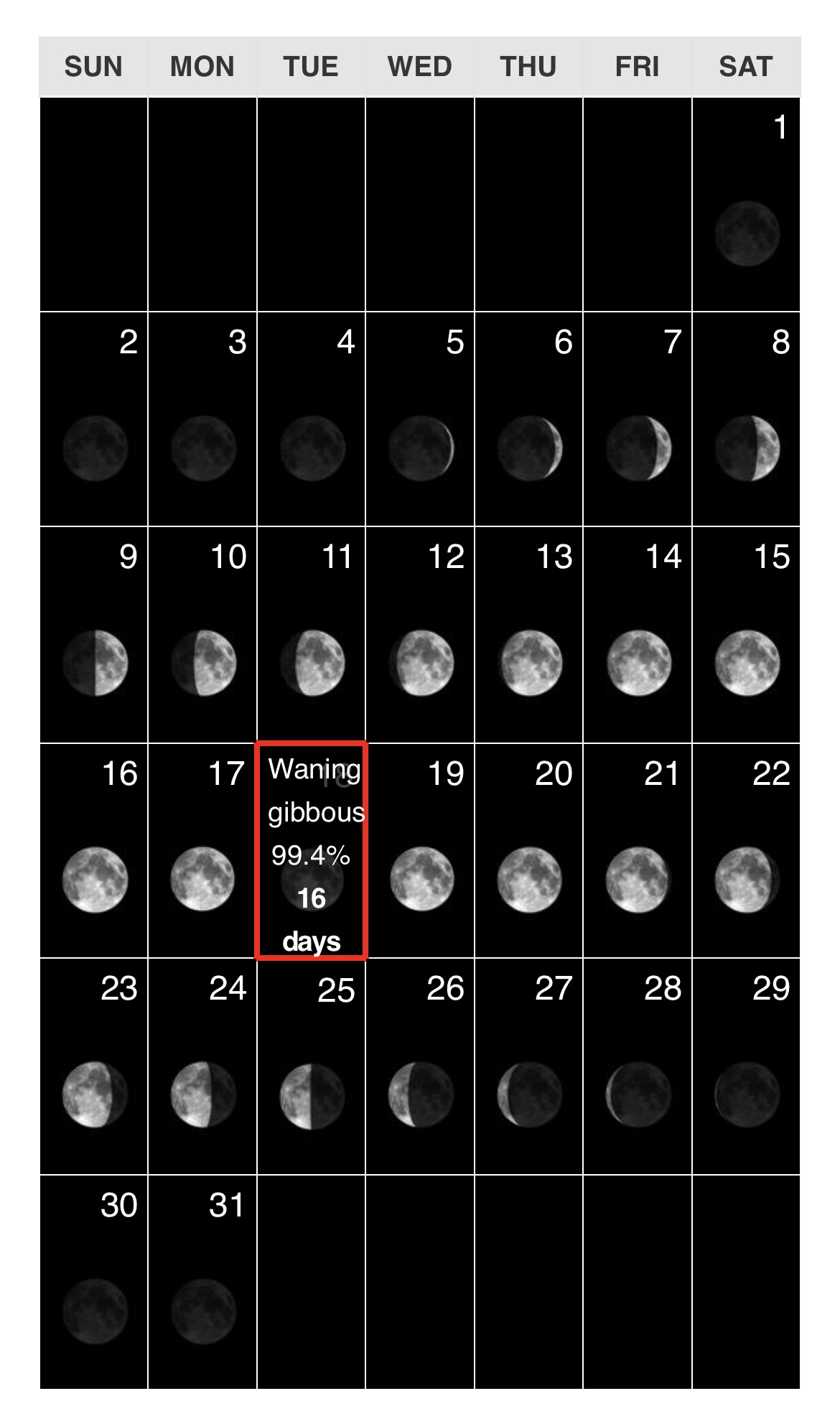 The whole process can be as simple as getting a blank book and taking a few minutes each day to note the phase of the Moon and one or two sentences about how you feel and/or what thoughts have impacted you emotionally over the course of the day. Be brief and stick to inner experience only: “Today I feel sad, happy, elated, apathetic, anxious, excited, etc.” Don’t analyze or try to explain. Just say what is. If you feel a need to go more deeply into the thought or feeling, please do so in a separate journal. You only want to record your dominant feelings or moods and the Moon phase, not other influences. This way the patterns of the Moon form organically without being clouded by our over analyzing minds.