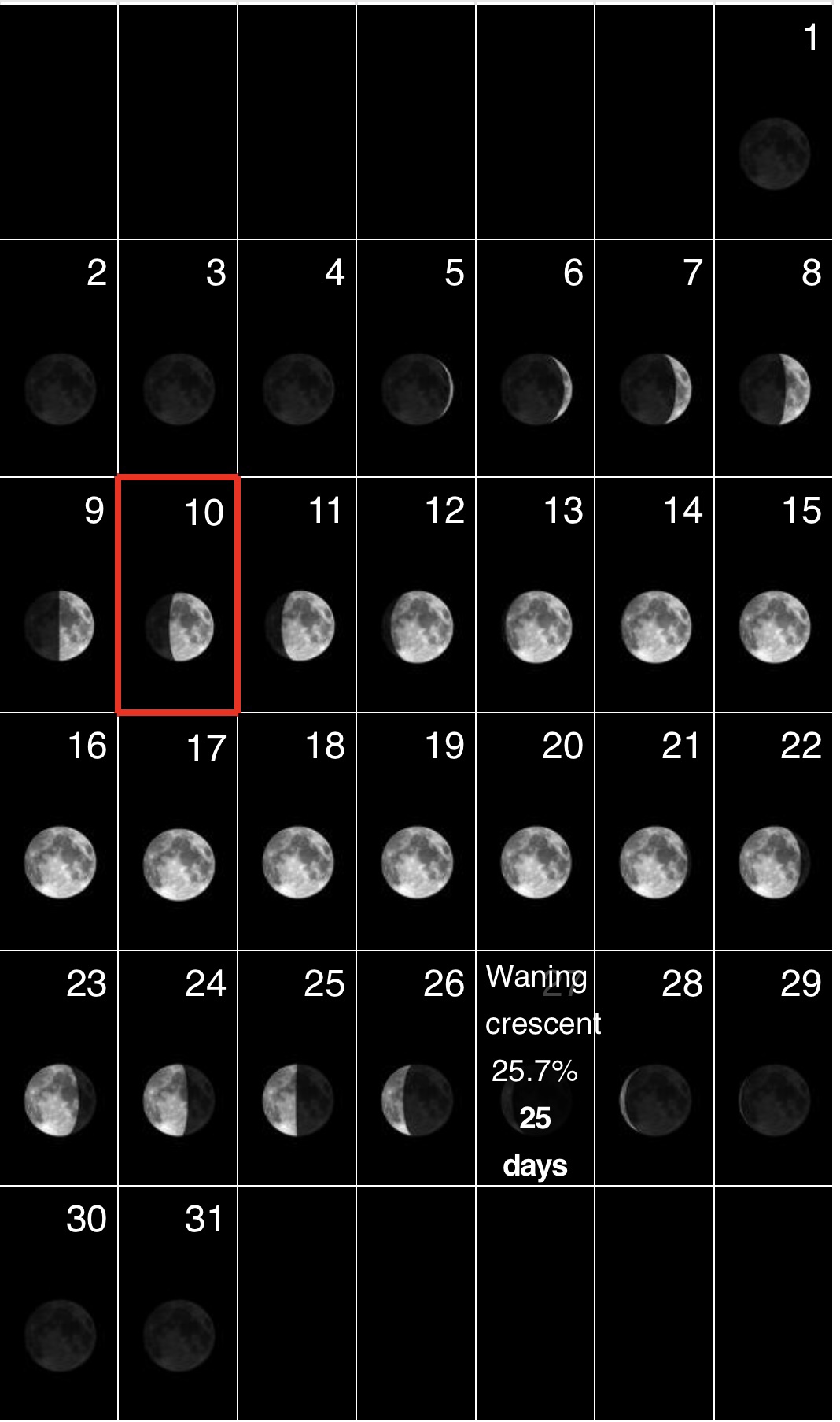 After you have at least three months of entries you will have developed a habit and are ready for the next step. Since humans are pattern-seeking animals, you may have already noticed that particular days or Moon phases contain recurring feelings, and moods. For the second phase of the process you should do each day’s entry first, then go back to previous entries for the same Moon phase and see if there are similarities. Don’t rush or force this, just look. This is wisdom and understanding that grows over time. It will reveal itself when you are ready for or need it.